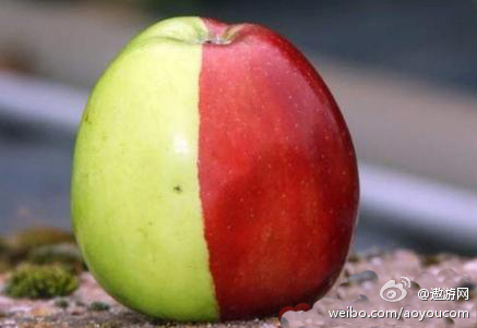 吸引眼球拍脑袋法//@有何作为:怎么算的?@遨游网:不要以为这又是一个PS恶作剧,这是英国一位叫Ken Morrish 的老人在自家花园的果树上无意中发现的一个奇迹。这个苹果天然分成了半红半绿的两种颜色,而且几乎是从中间完美地区分开来。就连专家也大呼神奇,称这种情况只有百万分之一的几率。